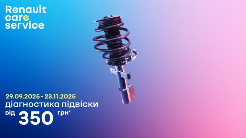 В рамках акції клієнтам офіційного сервісу Renault пропонується виконати діагностику підвіски за 350 грн. з ПДВ*, яка включає в себе: